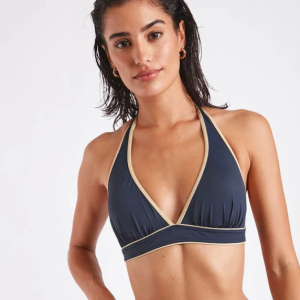 | Detalhes | Fato de banho de 1 peça Decote em V ligado por três argolas douradas Costas nuas Corte alto |